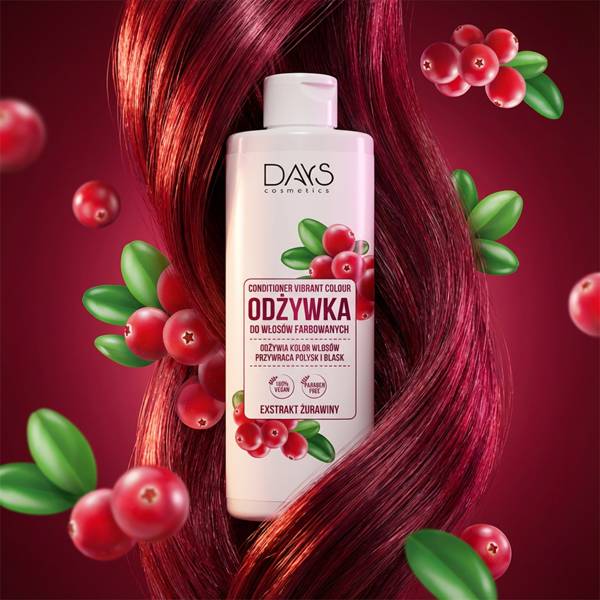 Jeśli farbujesz włosy, wiesz, jak ważna jest ich odpowiednia pielęgnacja. Odżywka DAYS Color Shine z ekstraktem z żurawiny została stworzona z myślą o włosach farbowanych i z pasemkami – by chronić kolor, odżywiać i nadawać im piękny blask.