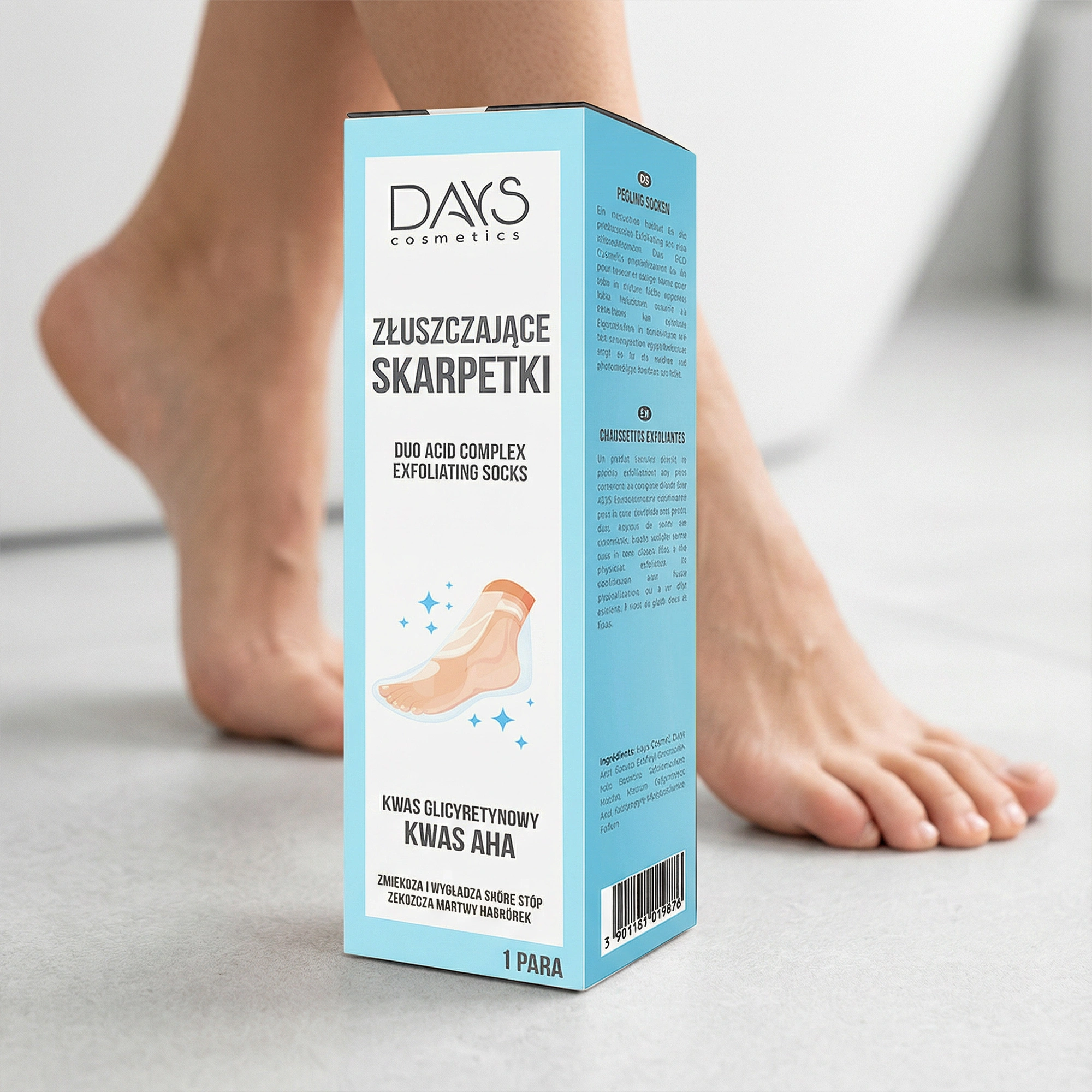 Pozbądź się zrogowaciałego naskórka i ciesz się gładkimi, miękkimi stopami już po jednej kuracji! Skarpetki złuszczające DAYS COSMETICS to innowacyjna maska peelingująca, stworzona z myślą o stopach suchych, spierzchniętych i skłonnych do pękania.