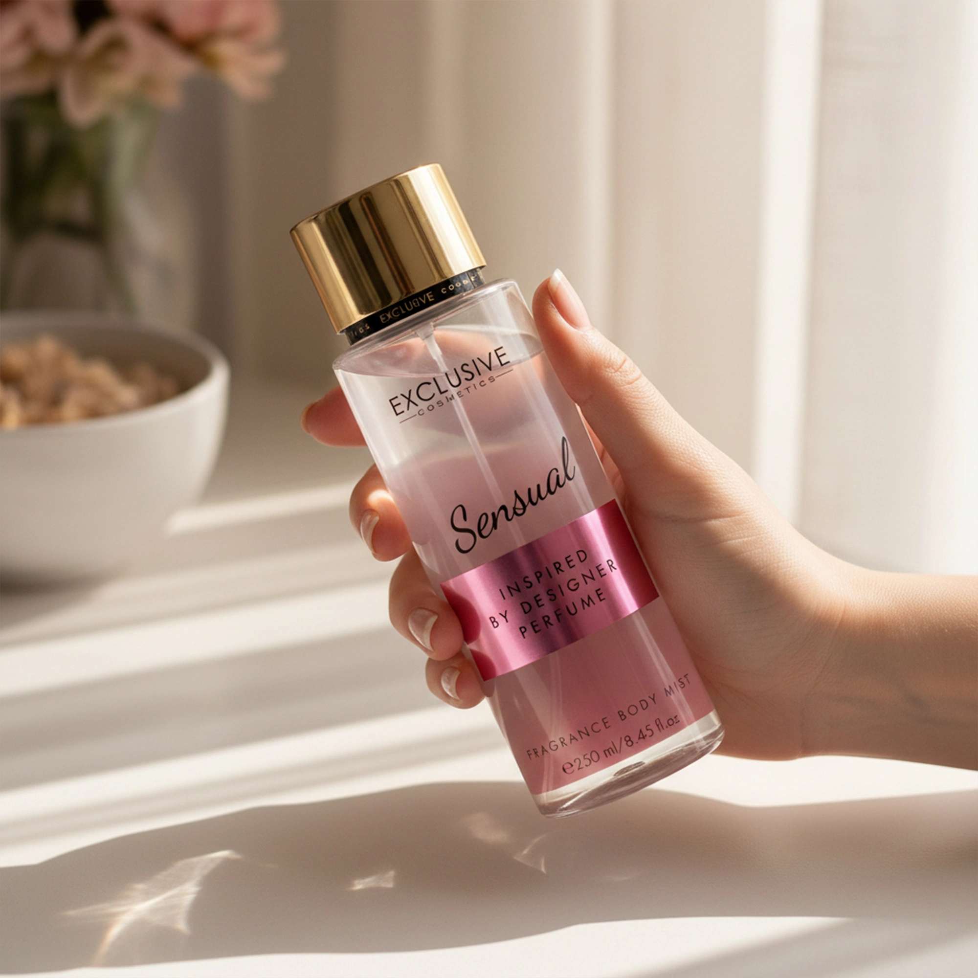 Sensual od Exclusive Cosmetics to mgiełka zapachowa inspirowana śródziemnomorską egzotyką, stworzona z myślą o kobietach, które cenią elegancję, tajemniczość i wyrafinowany charakter zapachu. Kompozycja otula skórę luksusową aurą, tworząc osobistą chwilę wytworności i zmysłowego relaksu. Zapach towarzyszy na co dzień, delikatnie podkreślając kobiecość i wyjątkowość bez przytłaczania intensywnością.